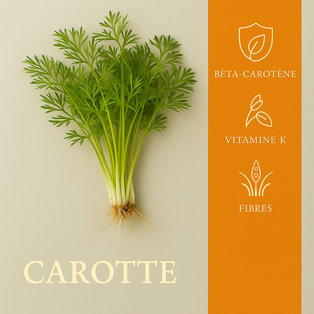 Les micro-pousses de carotte apportent une douceur naturelle et une saveur subtile qui ravissent les amateurs de fraîcheur. Leur couleur vive rehausse instantanément l'aspect de vos créations culinaires.